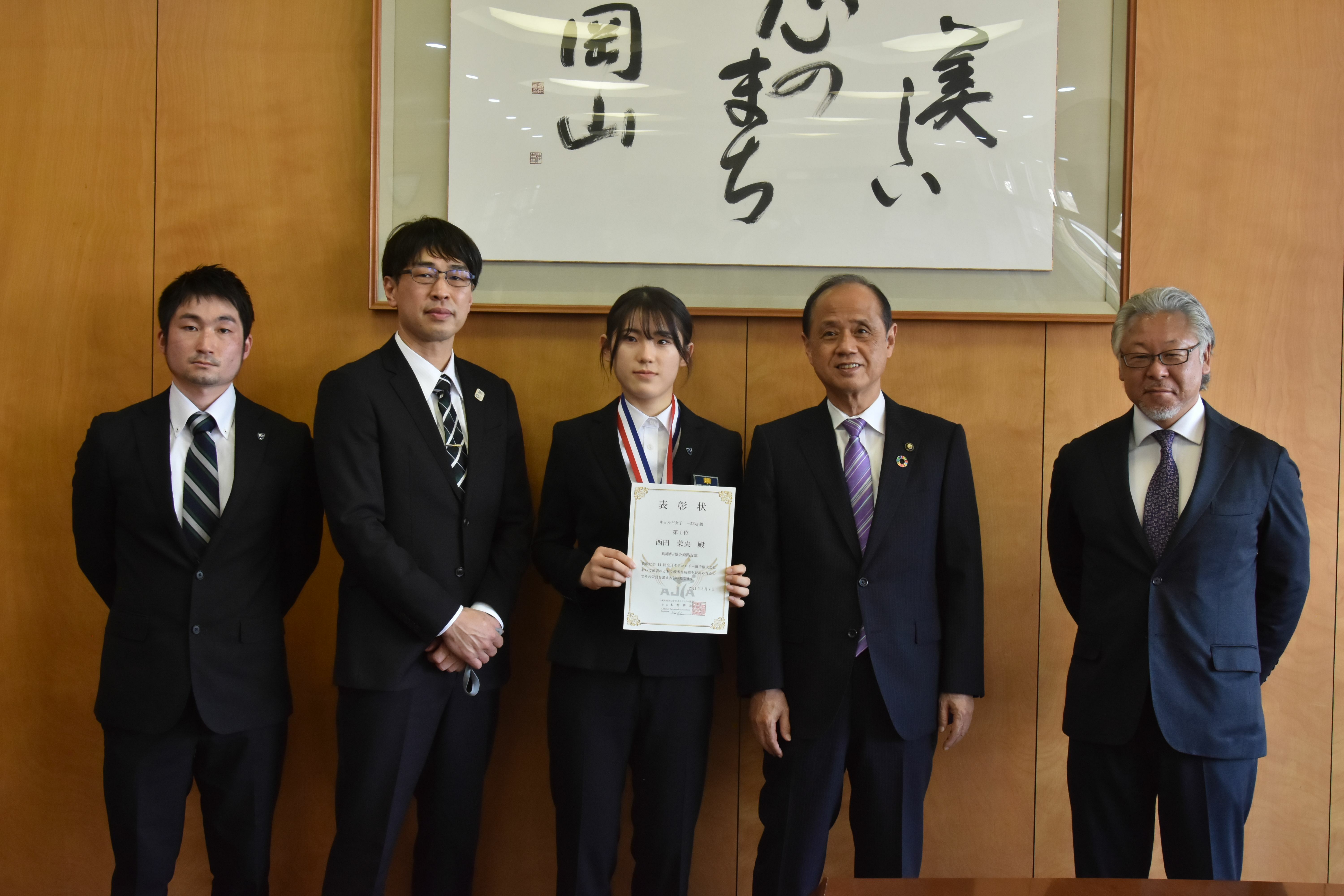 テコンドー全日本選手権優勝の西田茉央さんが岡山市長を表敬訪問