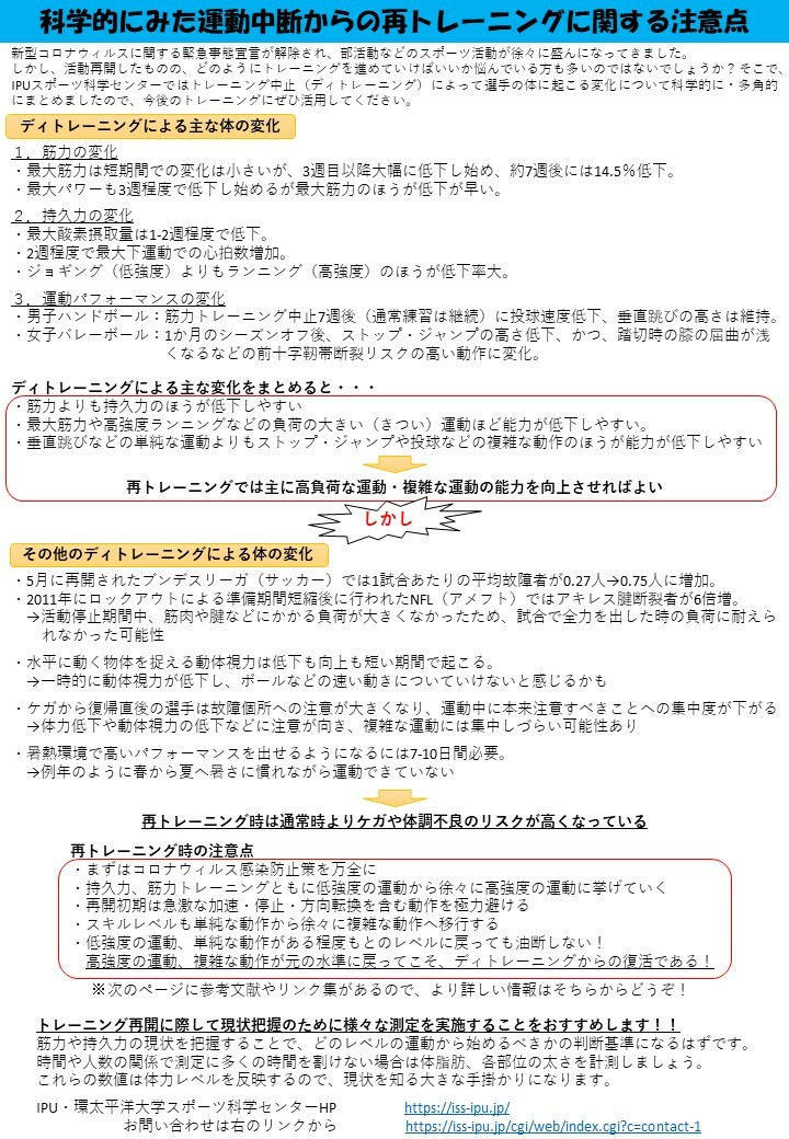 「【選手および指導者の方へ】トレーニング再開時の注意点についての情報提供」