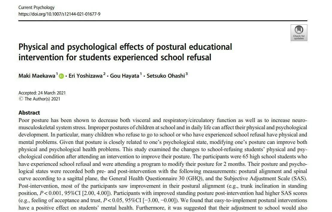 タイトル: Physical and psychological effects of postural educational intervention for students experienced school refusal