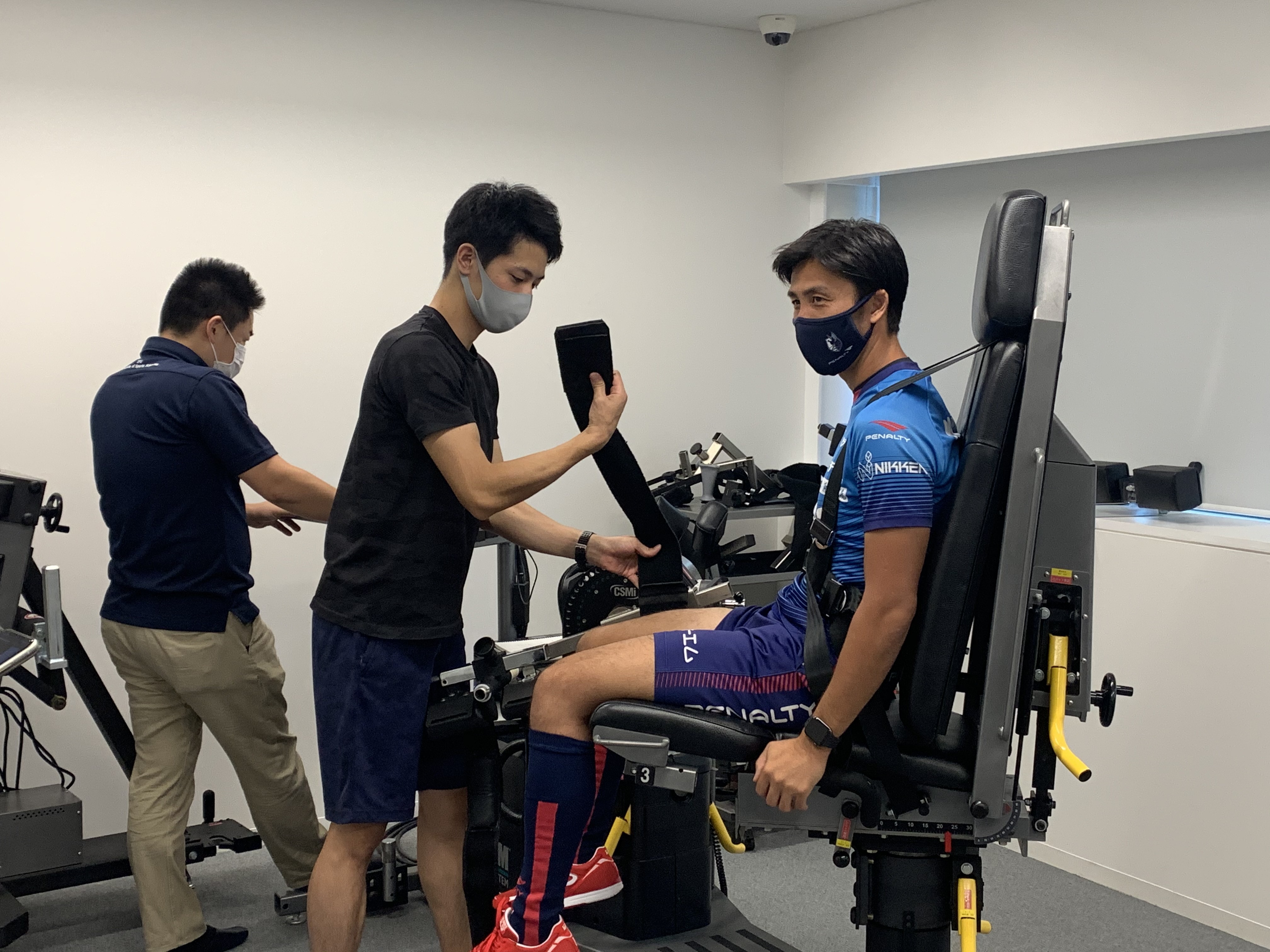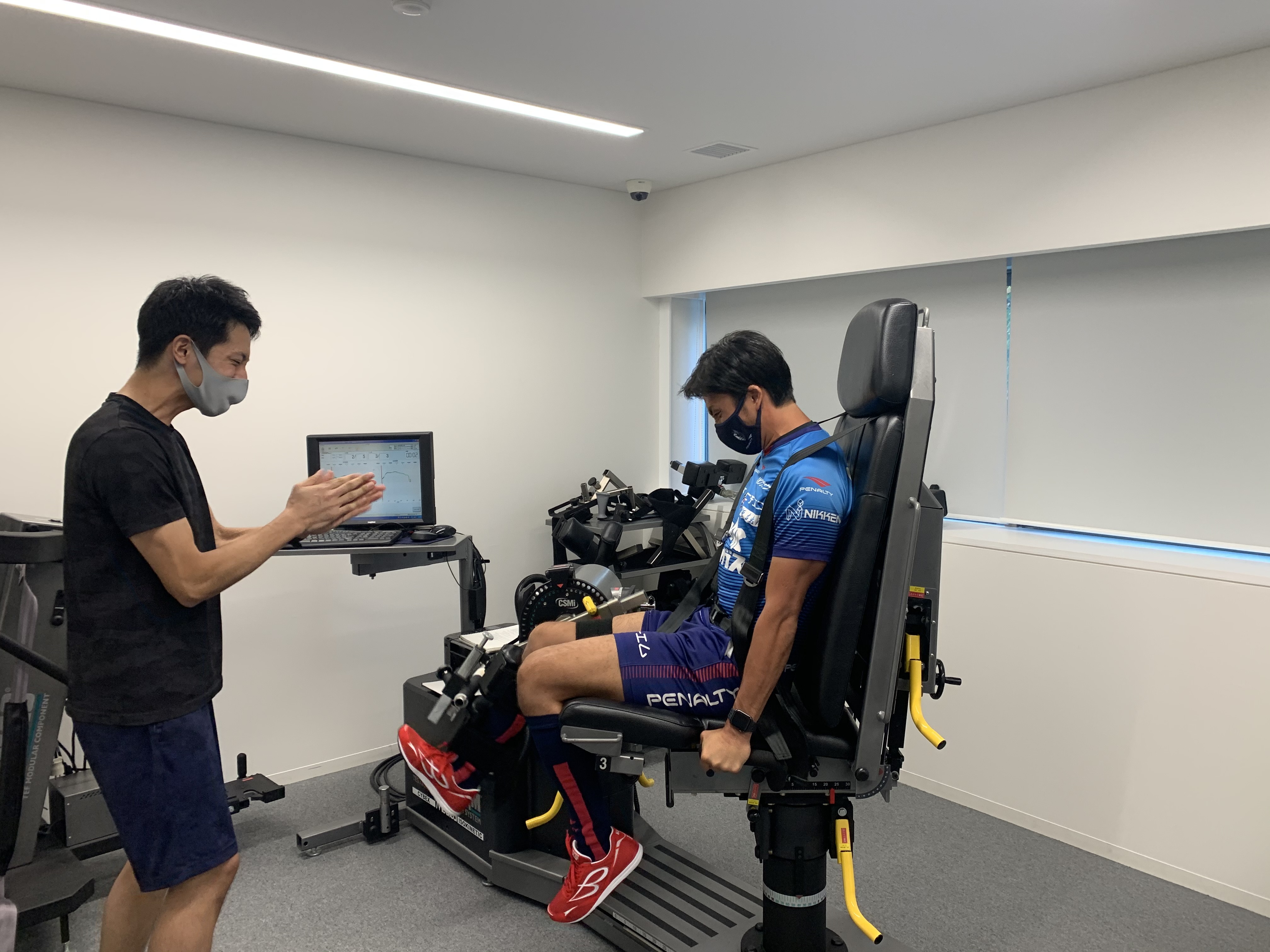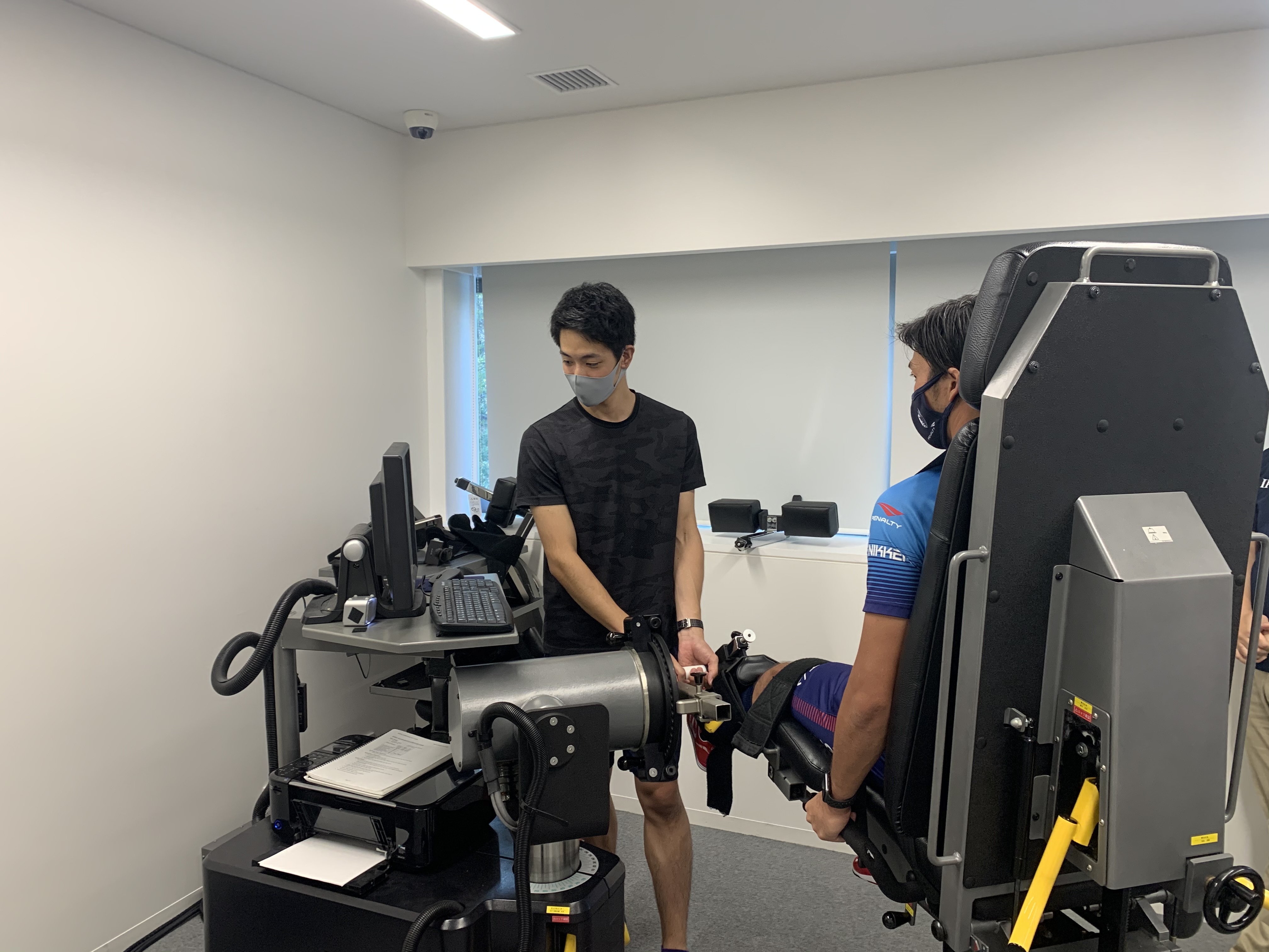 2020年8月28日にAT育成プロジェクトで活動しているIPU3年生の鳥越大道君がプロサッカー選手であるファジアーノ岡山、椎名一馬選手の膝関節筋力測定をスポーツ科学センターにあるCybex Normにて行いました。