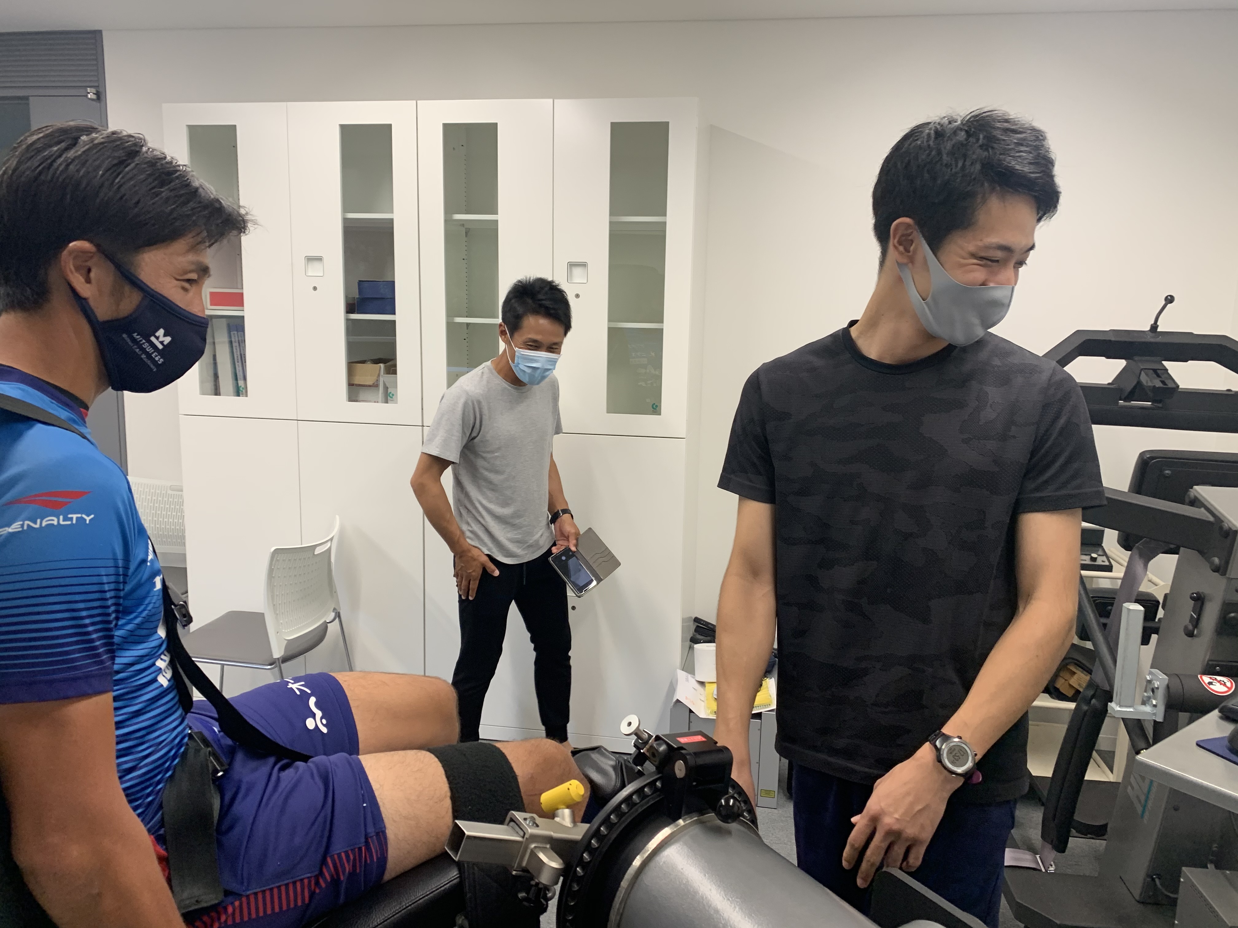 測定員である鳥越君は選手としっかりコミュニケーションを取り、とても打ち解けた様子で測定が進みました。また、測定後、記録のフィードバックを選手、ファジアーノ岡山のトレーナーさんに行い、現在の状況を報告しました。