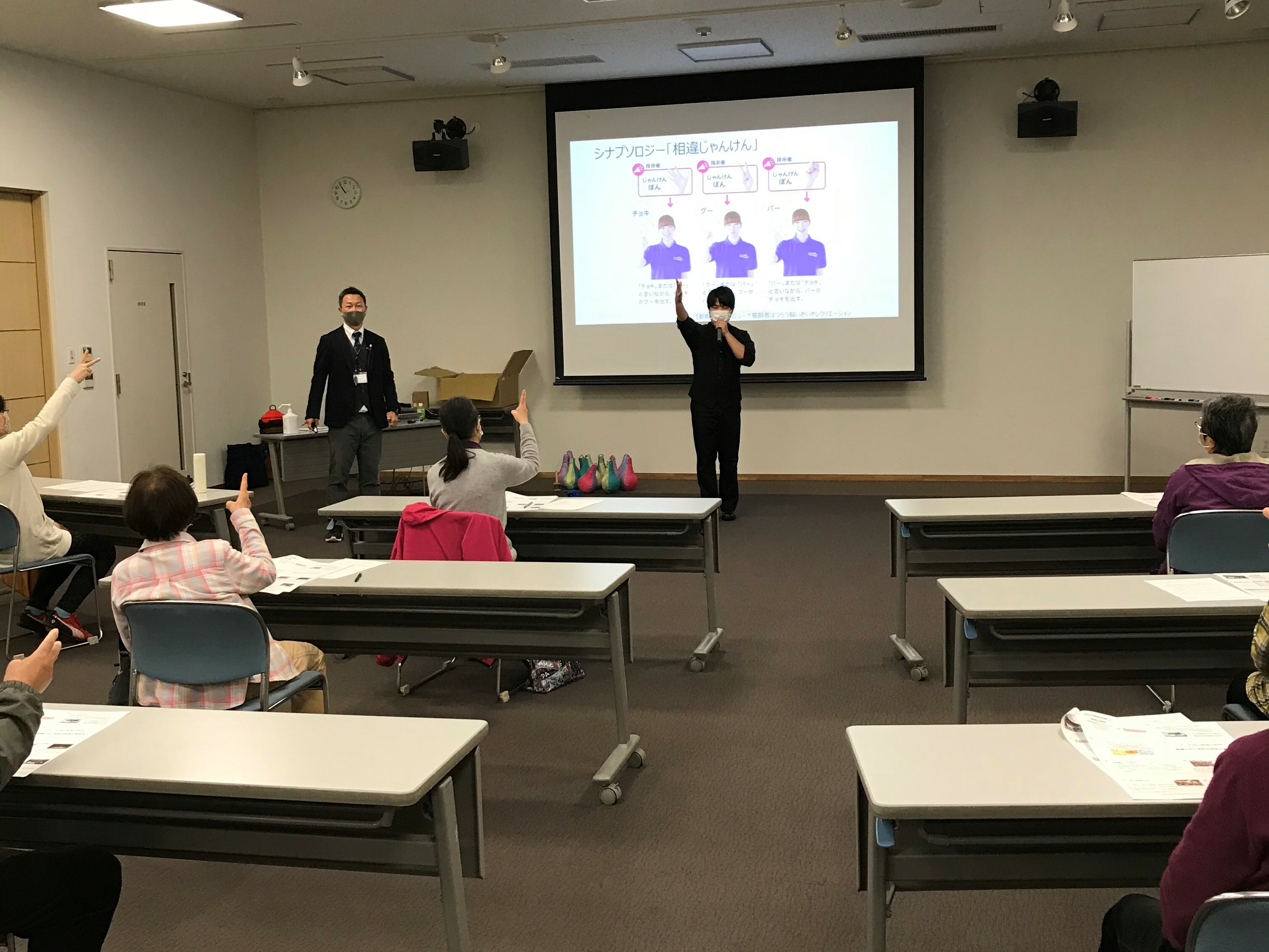 この応援の効果を体感してもらうため、早田先生は、1人での脳トレエクササイズから始め、その後、チームでニュースポーツ「カーリンコン」と「ガラッキー」を体験してもらうプログラムを組みました。その結果、11名の参加者全員から楽しかったという感想を聞くことができました。
