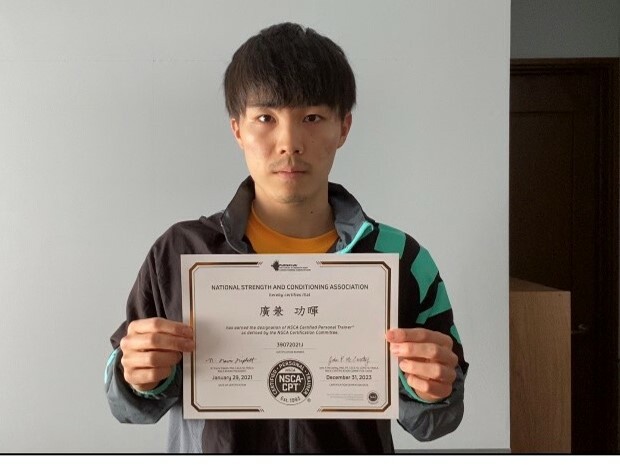 このプロジェクトから、2020年度は、叶 屹辰(体育学科2年)、廣兼功暉君(健康科学科4年)の2名の学生ががパーソナルトレーナー資格であるNSCA-CPTに合格しました。2人からコメントが届いておりますので、ご紹介します。