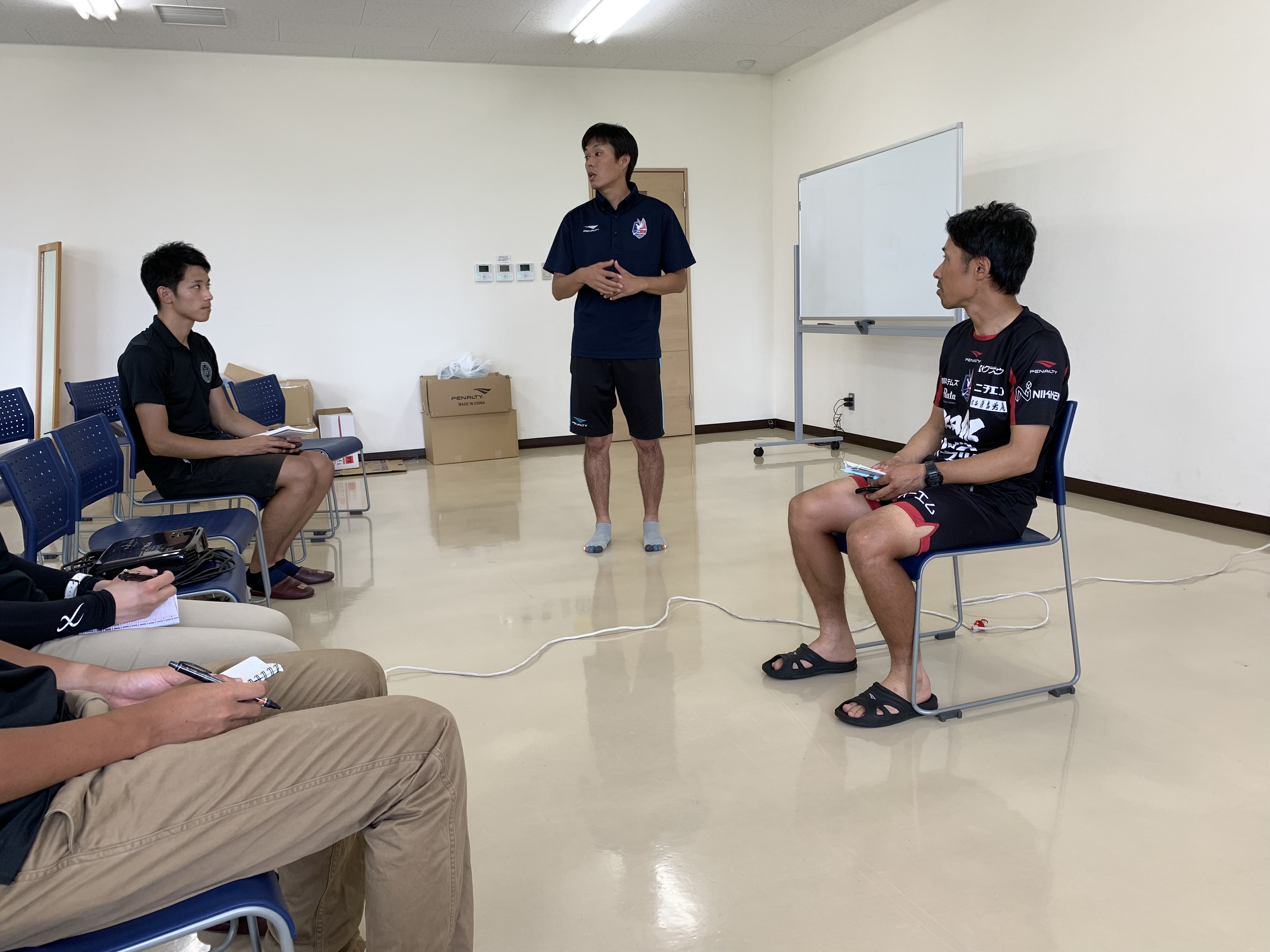 現地に到着してまず初めにアカデミー事務局長の氏平様の案内で練習風景、トレーニングルーム等の施設全体、トレーナーさんによる選手へのケアの様子等を見学させていただきました。