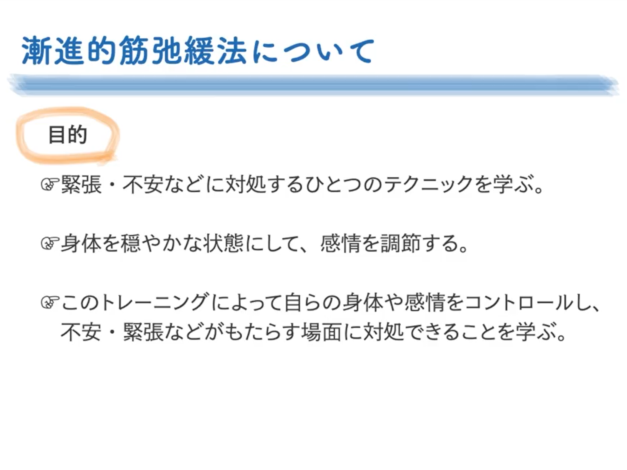 動画は3つの内容で構成され、リラクセーションに対する基礎知識をはじめ、最も基本となる呼吸法や漸進的筋弛緩法を紹介しています。第2回目となる今回は、動画②「リラクセーションの基礎知識及び漸進的筋弛緩法」を配信します。アスリート向けではありますが、誰でも手軽にできる内容ですので、ぜひ体験してみて下さい。