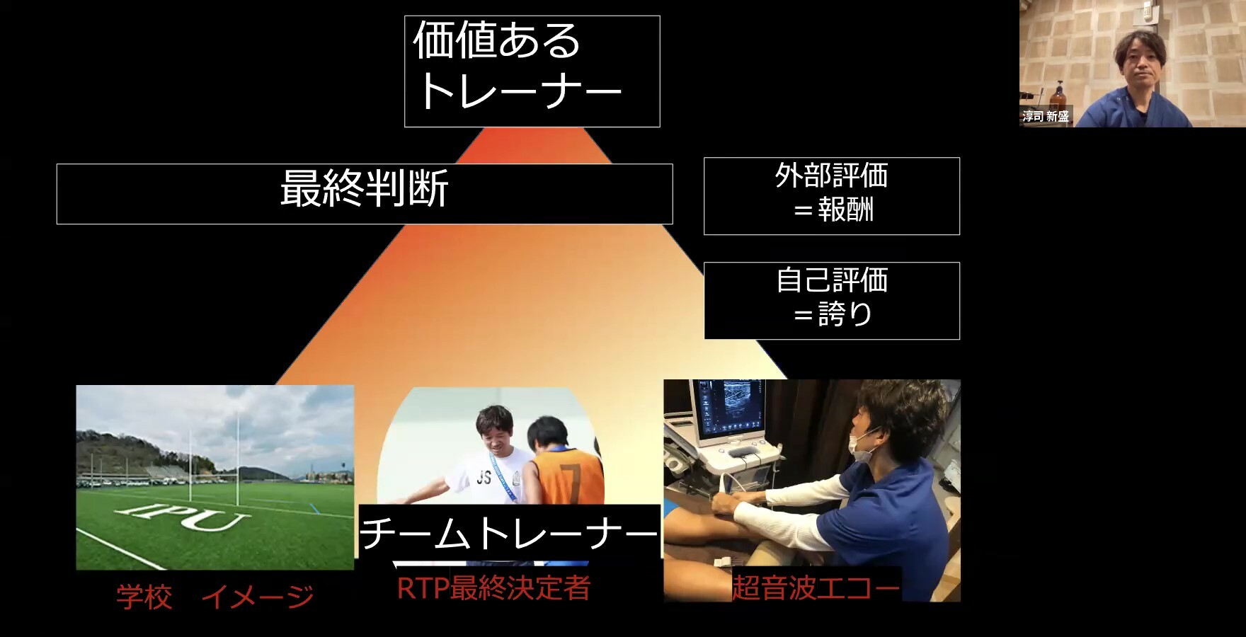 ”価値あるトレーナーに関してのお話が聞けて個人的に良かったです。大学で習ったことを何度もシミュレーションをすることが大事だということが今回の講話で行ってみようと思いました。これからの学生トレーナー生活にしっかり落とし込めていけたらいいなと思いました。”