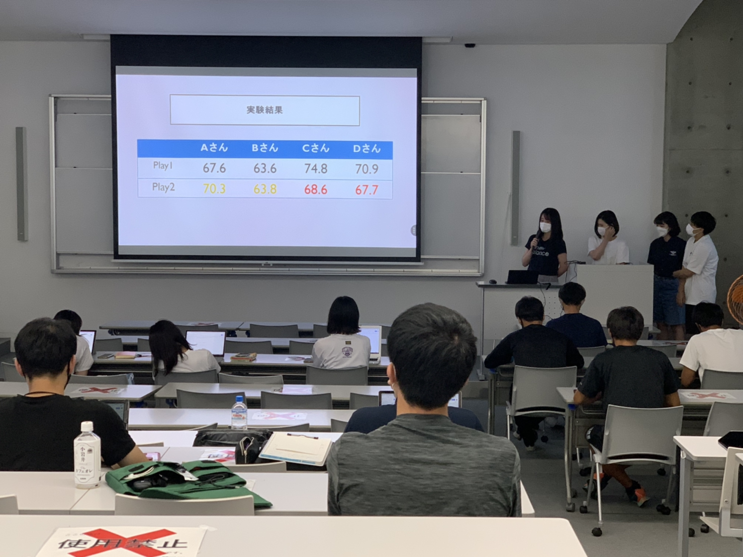 2日目には前日測定したデータをPC上で解析する方法を学び、速度や関節角度を算出し、グラフを作成し、データを視覚化しました。2日目の最後には、各グループでテーマを決め実験を行いました。