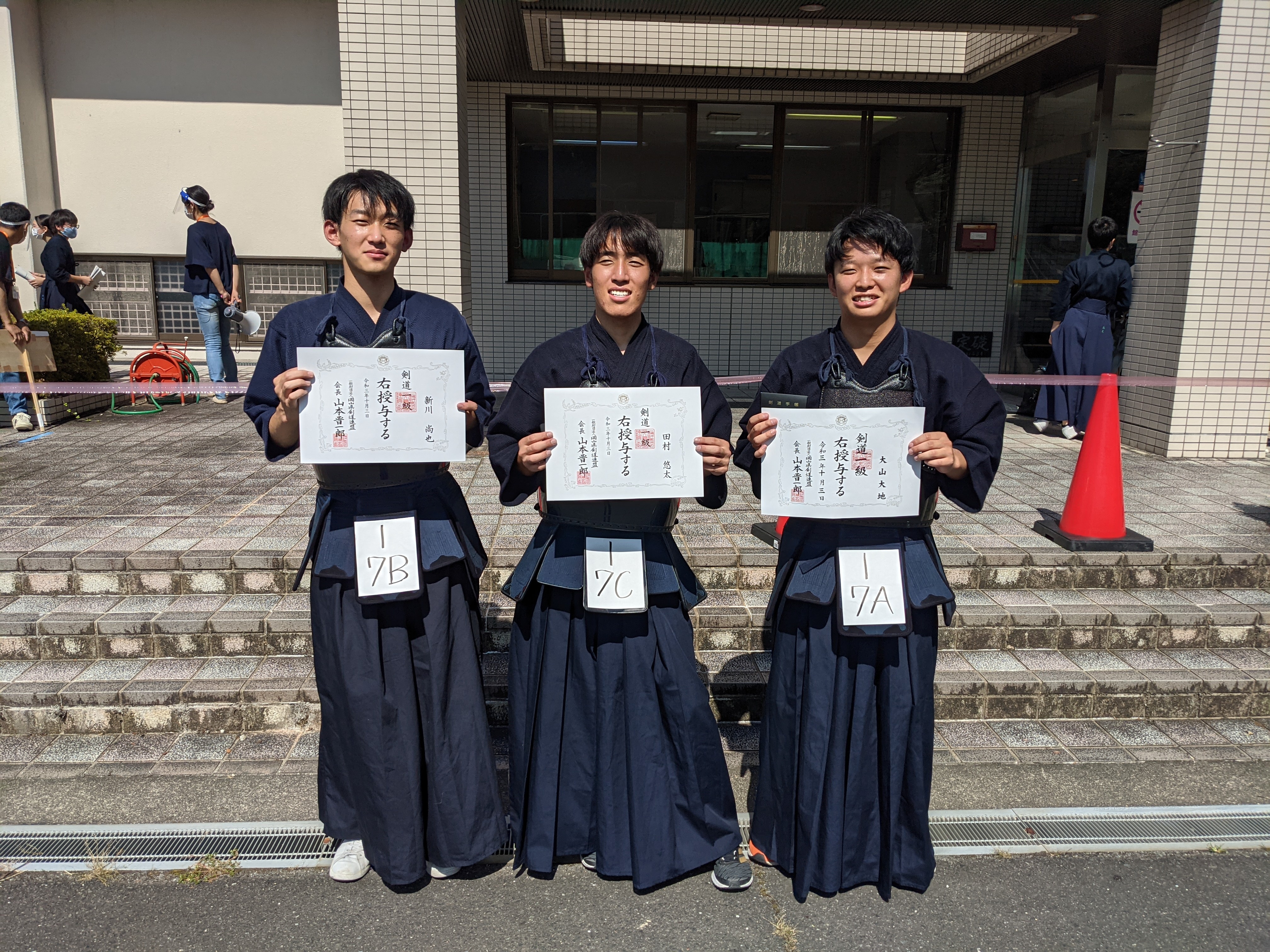そして今回、1回目の1級審査を合格した3名(体育学科浦部ゼミ3年生:眞田倫光、甲斐幹人、松山文哉)の学生が、初段審査に挑戦して見事一発合格を成し遂げました!!