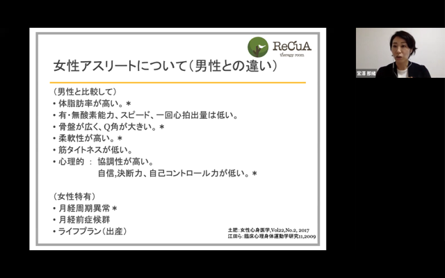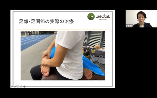 女性アスリート身体的・心理的特徴を実体験を交えながらお話頂き、また足部・足関節に対する徒手療法についてオンラインでありながらも実技を交えて詳しく教えて頂きました。