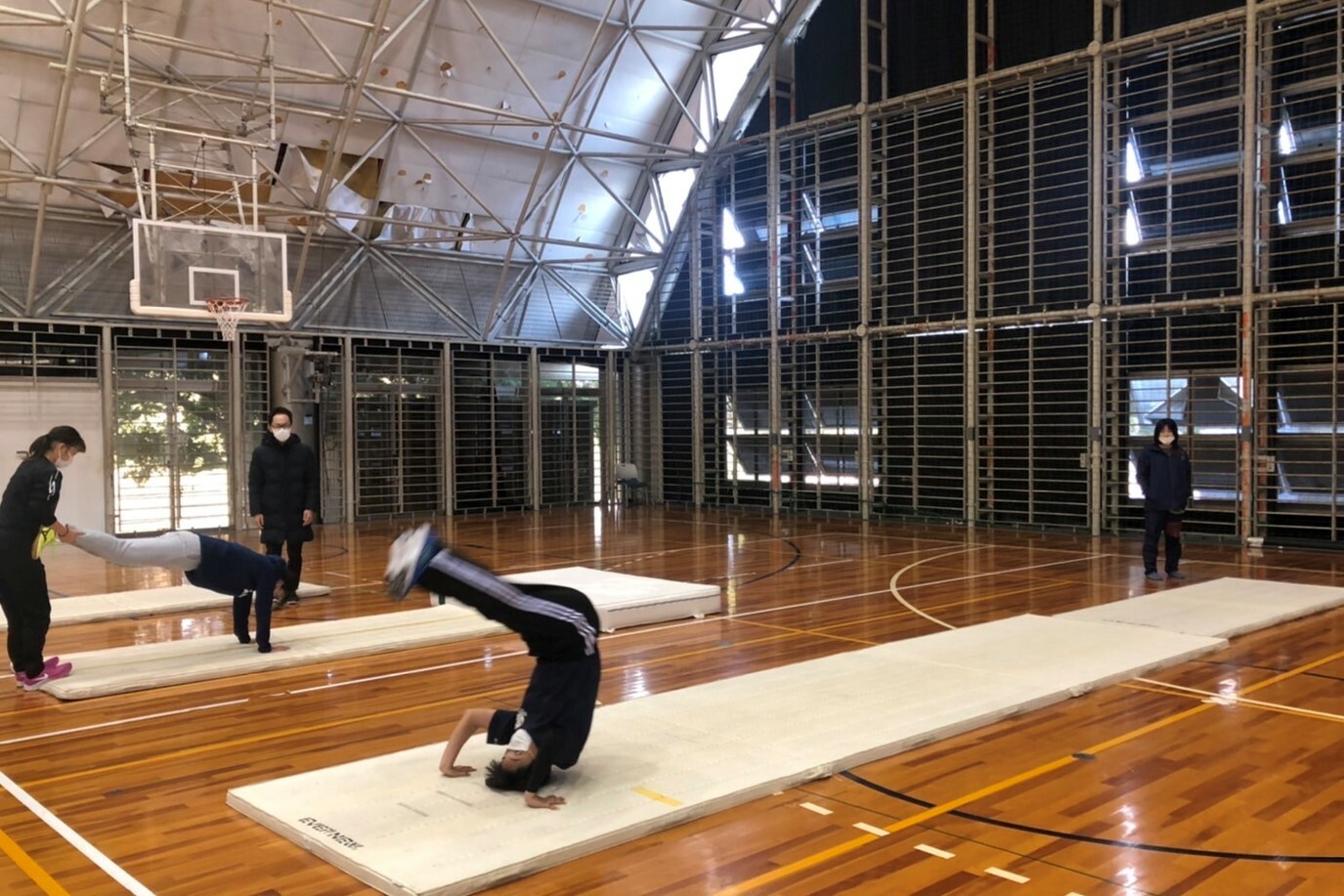 器械運動Ⅰでは、器械運動に関する基礎的な技から発展的な技を身に付けることを目標の1つとしています。