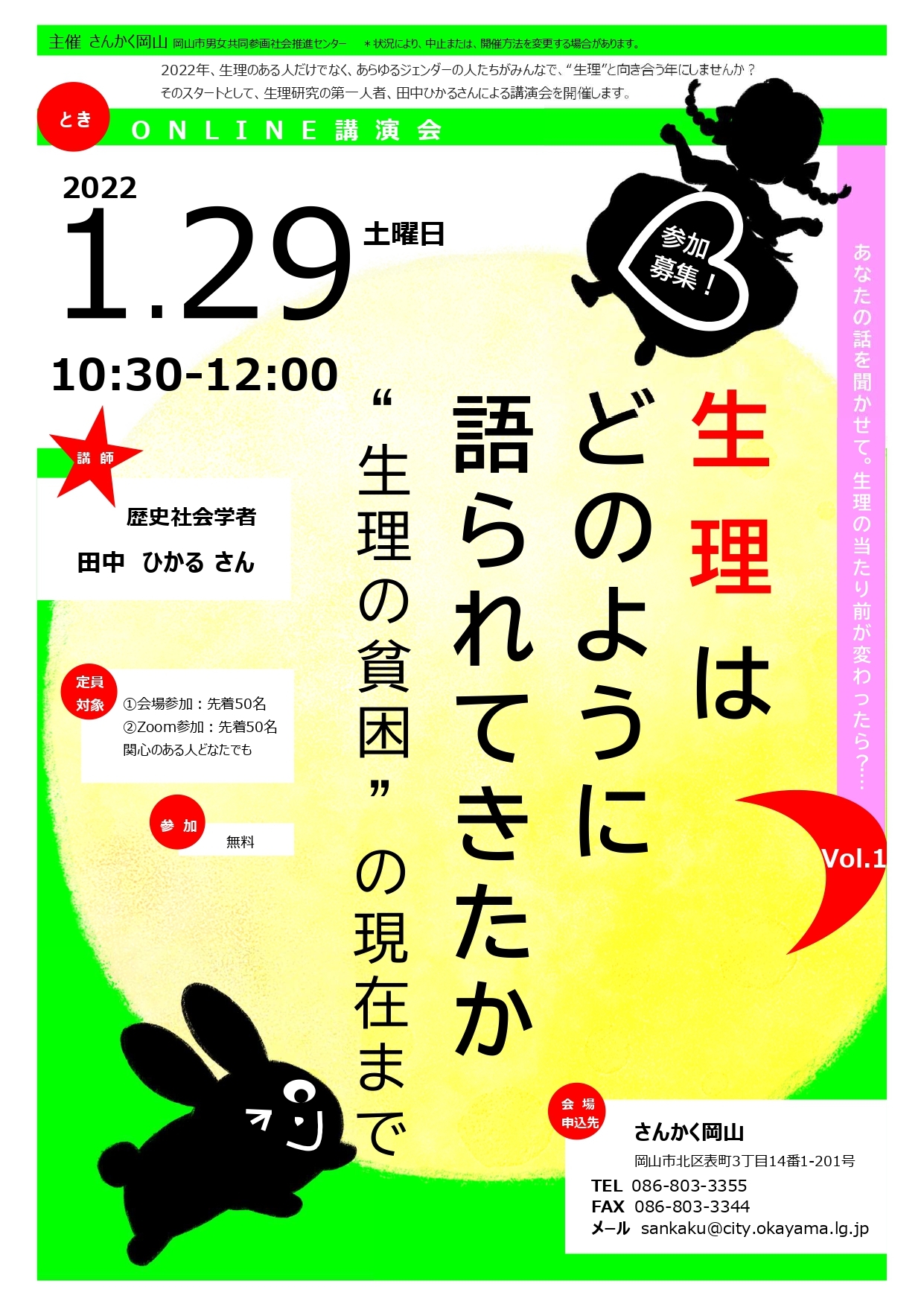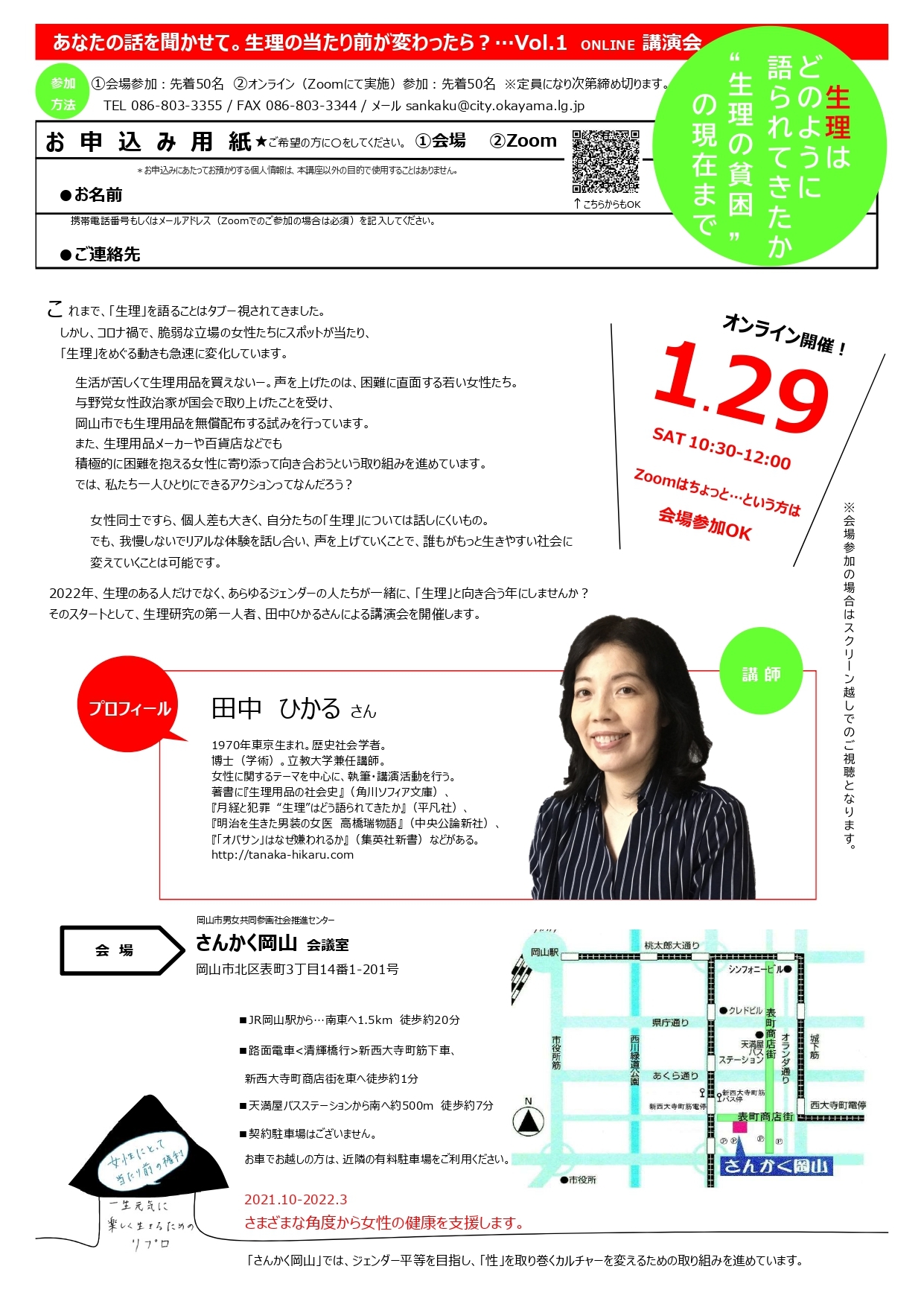 *岡山市男女共同参画社会推進センターさんかく岡山主催イベントです。