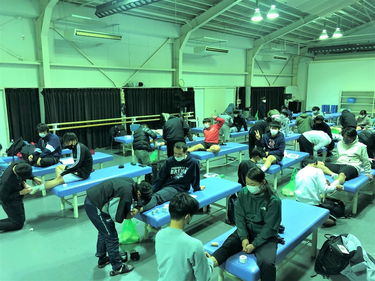 本授業は日本スポーツ協会公認アスレティックトレーナーの受験に必要な科目であり,今年度は体育学科,健康科学科の2年生を中心に70名程度の学生が受講しました.