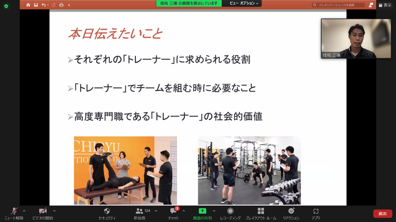 講師には、これまで一般層からアスリートまでの幅広い層の指導に従事し、現在は国立スポーツ科学センターにて、日本代表アスリートを対象としたトレーニング指導に当たっている三浦佳祐氏をお招きしました。