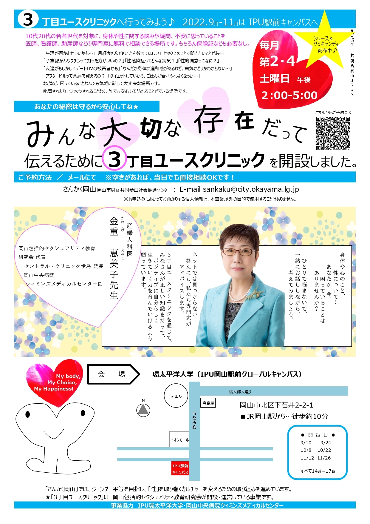 9月~11月の3ヶ月間は、IPU・環太平洋大学 岡山駅前 グローバルキャンパスにて ユースクリニックを開設します。