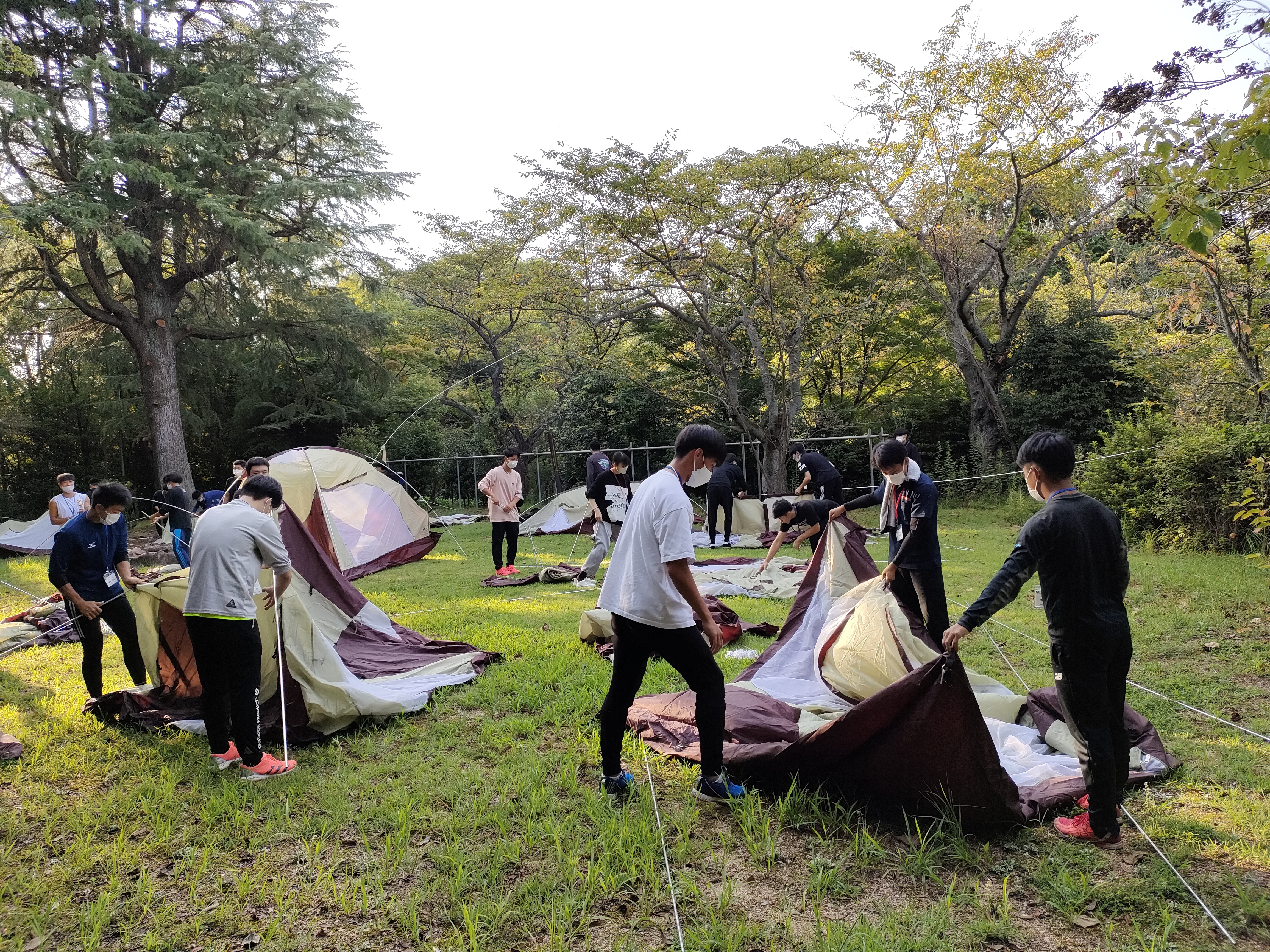 防災キャンプ実習も抗原検査キットを用いて全員の陰性を確認してからスタートしました。