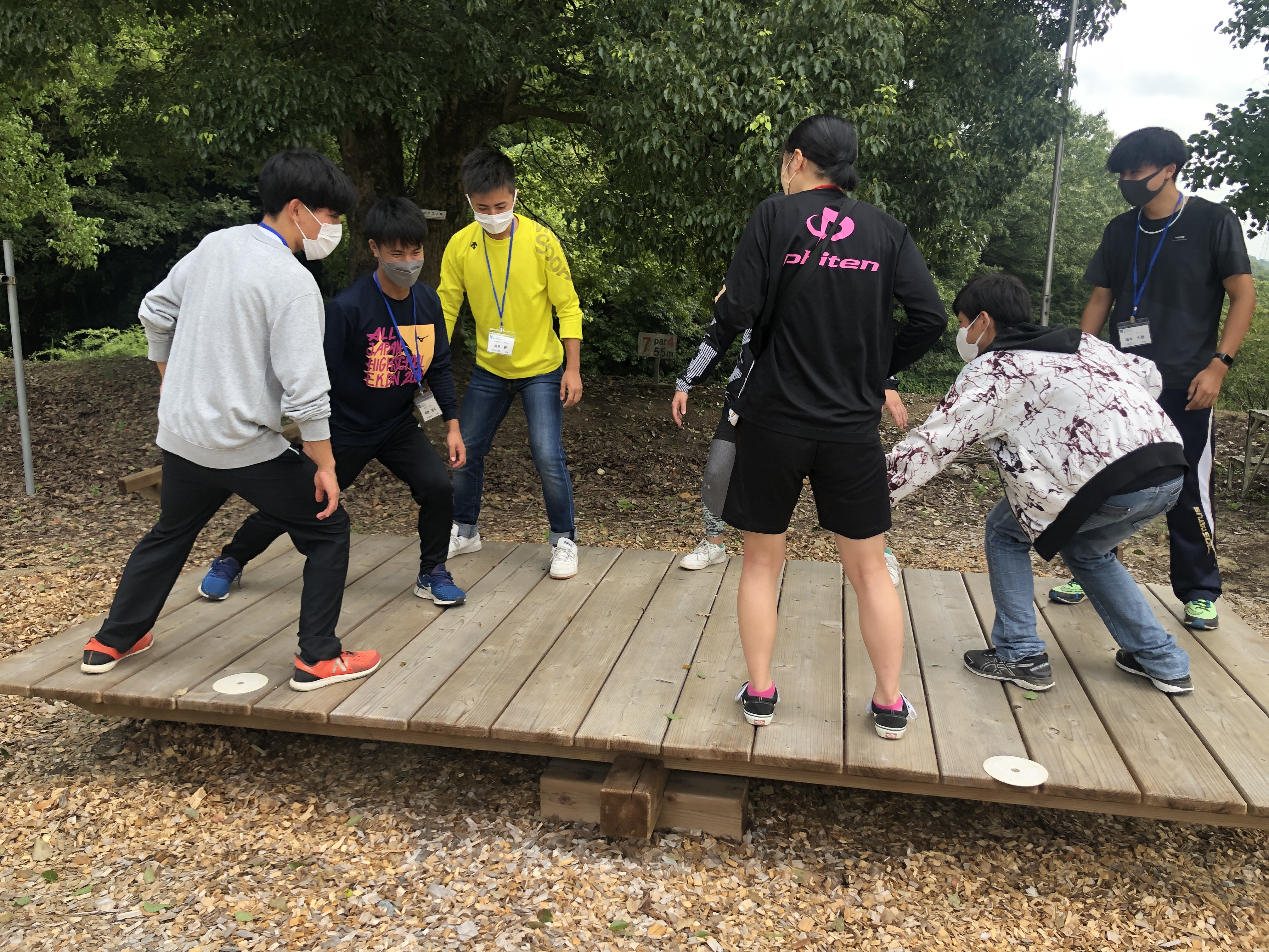 その後、倉敷市自然の家に移動しテントでの宿泊、そしてプロジェクトアドベンチャーやネイチャーゲームなどの野外教育・環境教育のプログラム、野外炊飯など1泊2日の濃密な実習となりました。