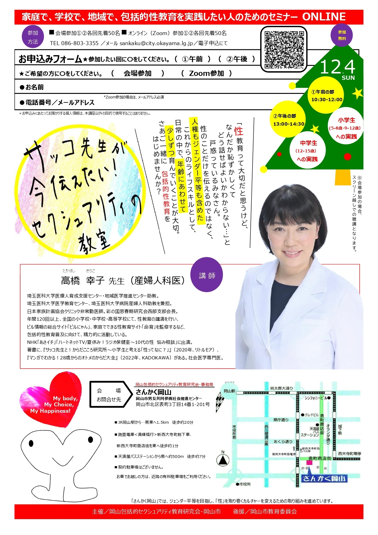 講演タイトル:「さっこ先生が今伝えたい!セクシュアリティの教室」