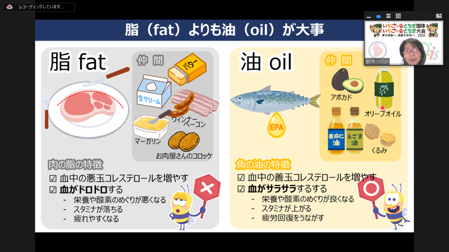 また、事前に栄養に関する質問を取り、その回答をしていただくQ&A形式で今回は講話いただきました。