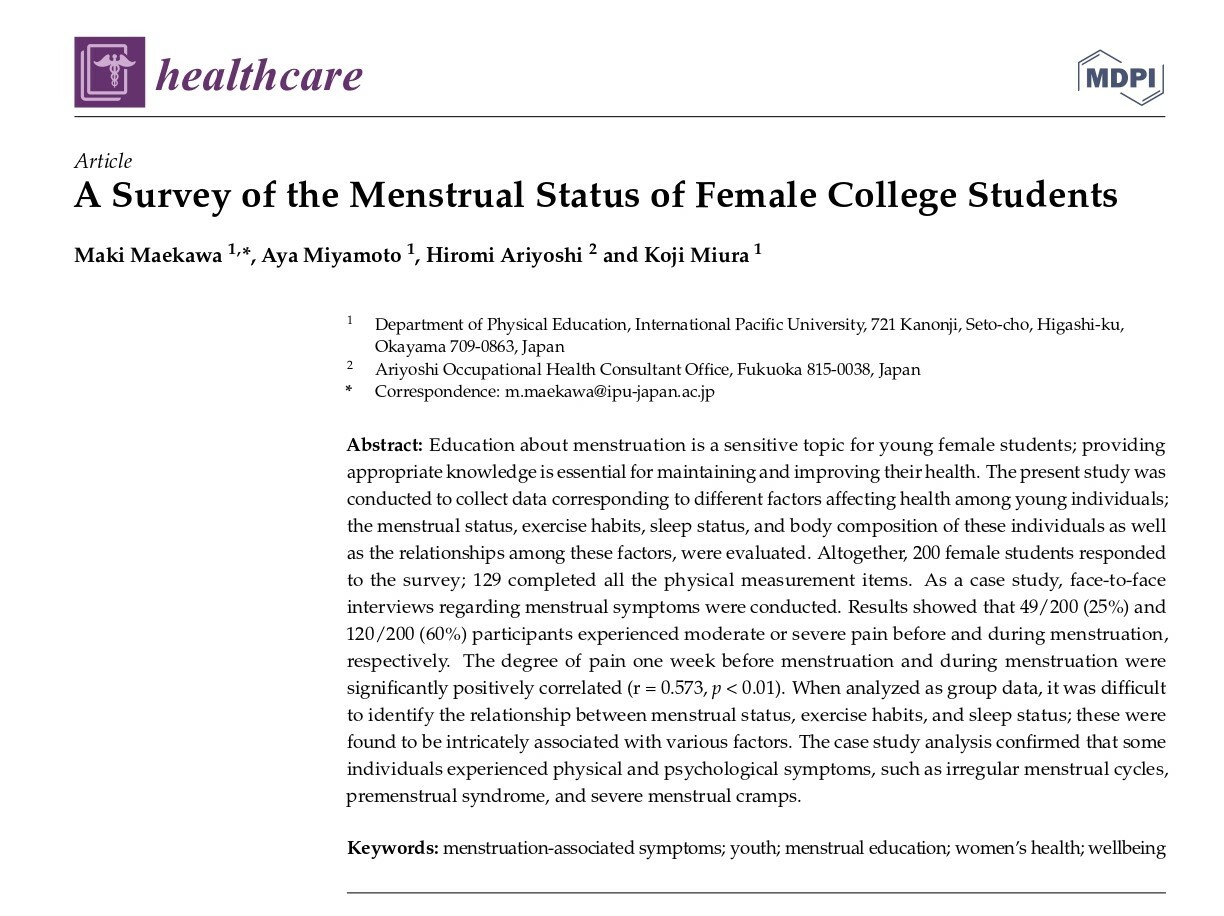 「A survey of the actual menstrual status of college female students(女子学生の月経を含むコンディションに関する実態調査)」