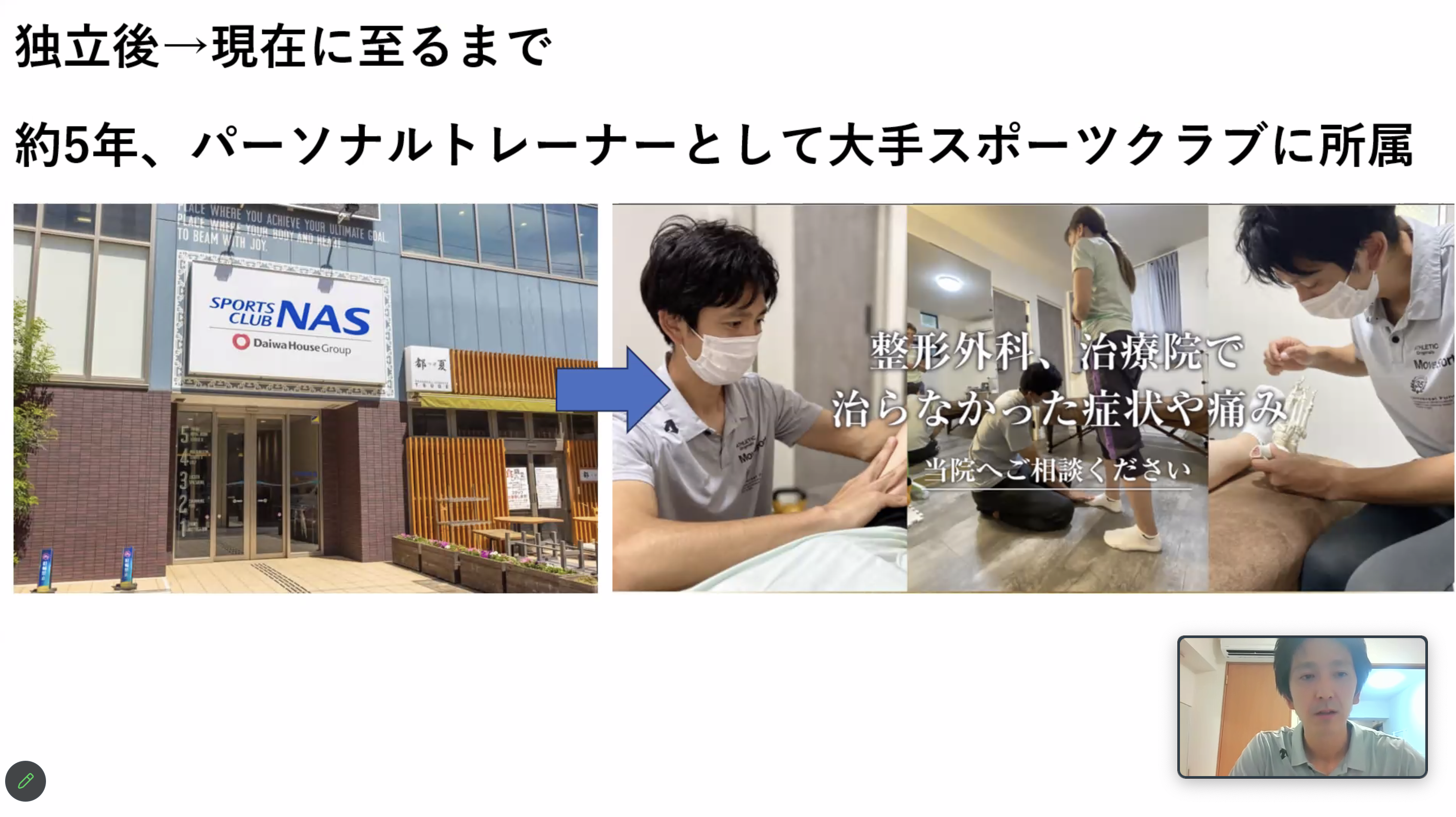 講演テーマは「パーソナルトレーナーにおける開業と経営~痛みなくランニングするための動作指導と徒手運動療法~」と題して、