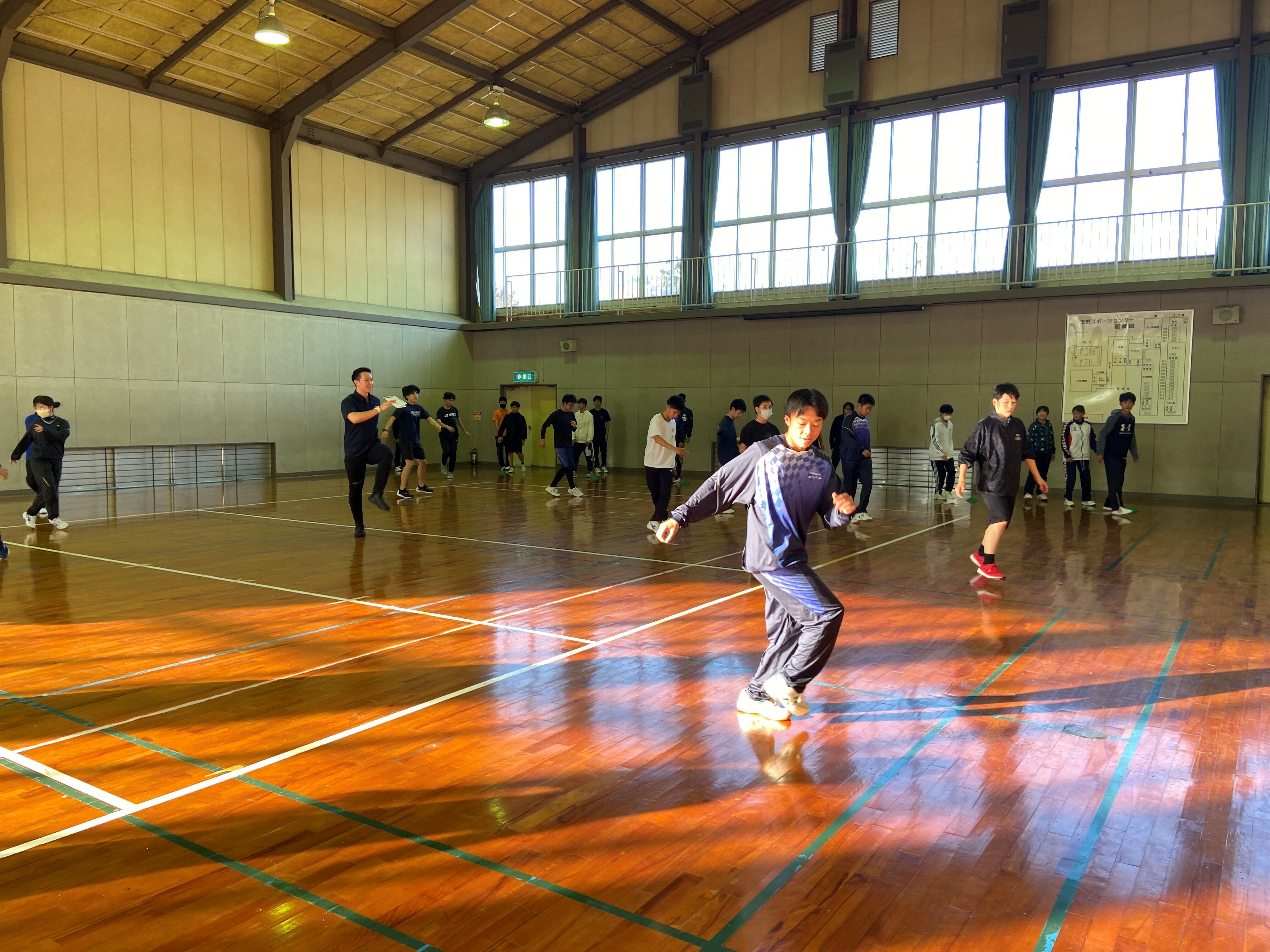 様々な競技の参加者がいる中で、全競技に活かせるようジャンプやスプリントの動作を中心にトレーニングを行いました。