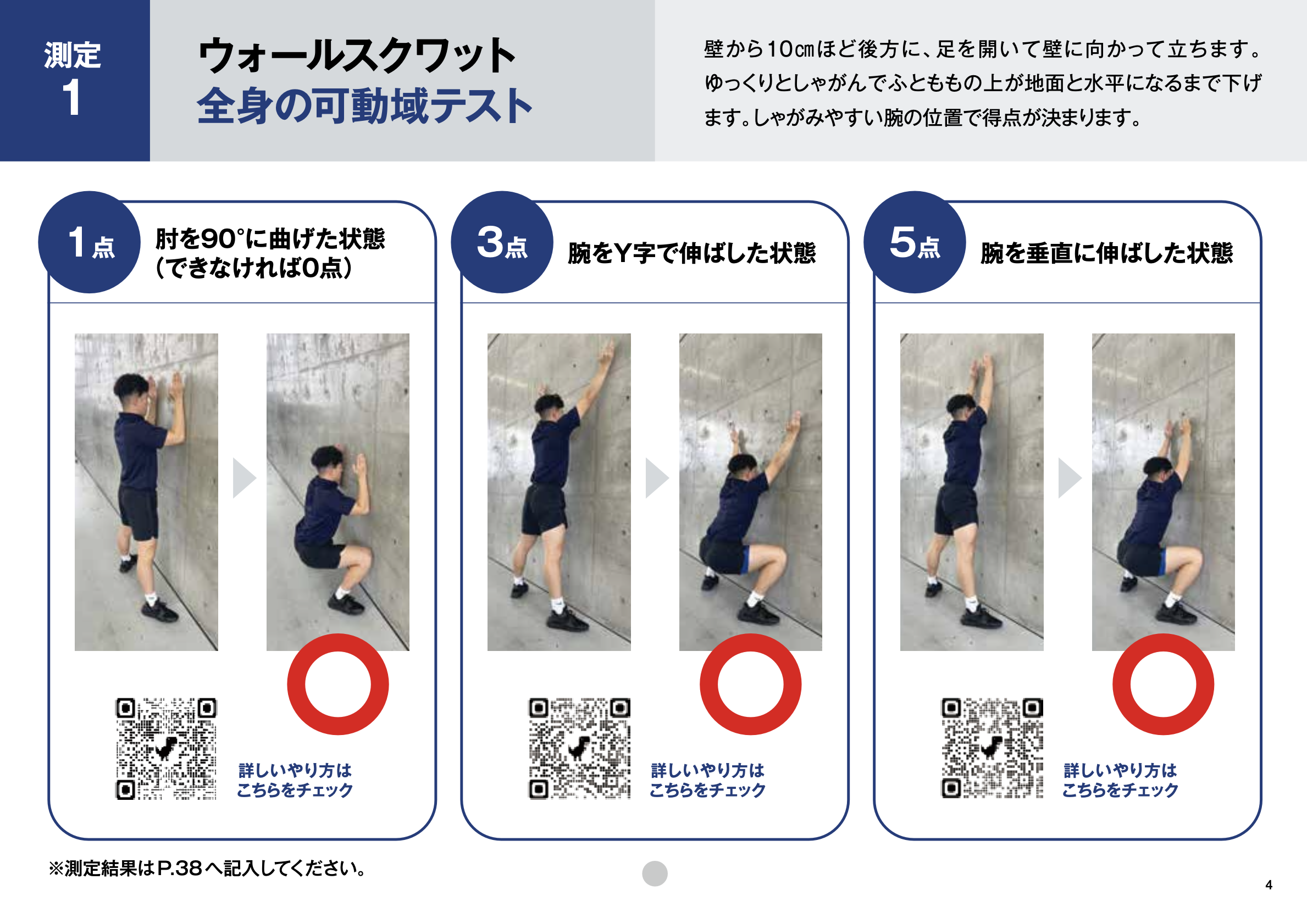 カレンダーを進めるにあたり、まずはじめに3種類の測定種目をおこなってもらいます。